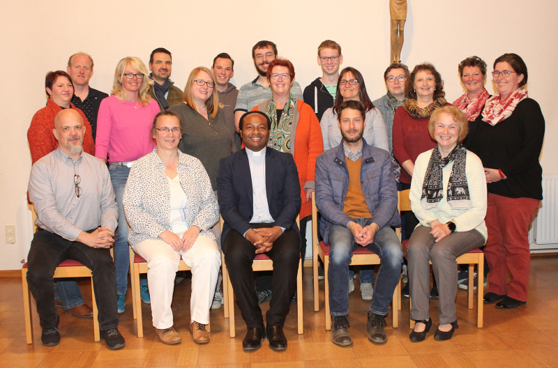 1. Reihe v.l.: Markus Reischl, Christa Eigenbauer, Pfarrer Kingsley Uzor, PAss. Jürgen Schnetzinger, Leopoldine Gram (Obm. Stellvertreterin)