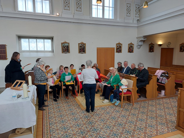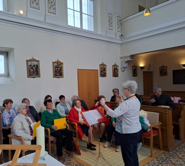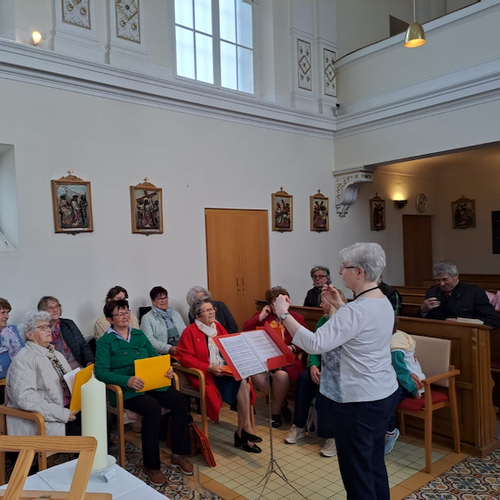 Zahlreiche Heimbewohner und Besucher der Hl. Messe freuten sich über die musikalische Umrahmung durch den "Chor: Freies Singen".