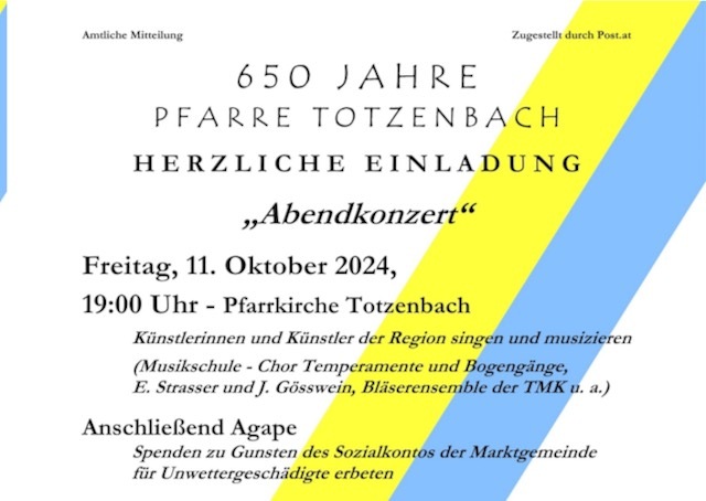 Unser 1. Teil zur 650 Jahrfeier war das Abendkonzert am 11. Oktober in der Pfarrkirche Totzenbach!