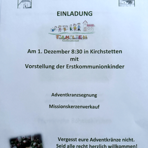 Vorstellmesse der Erstkommunionkinder und Adventkranzweihe