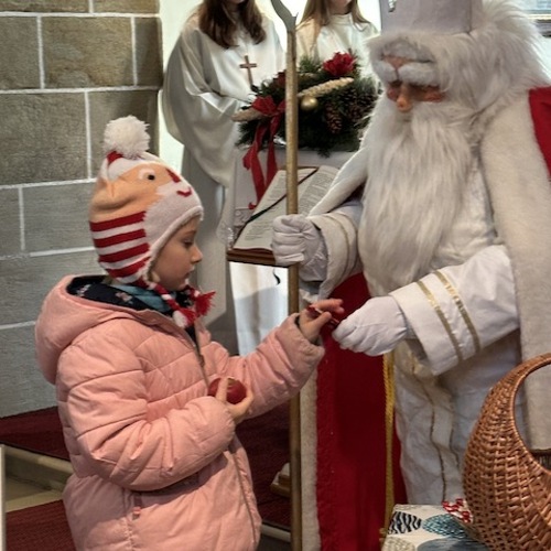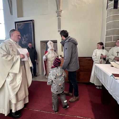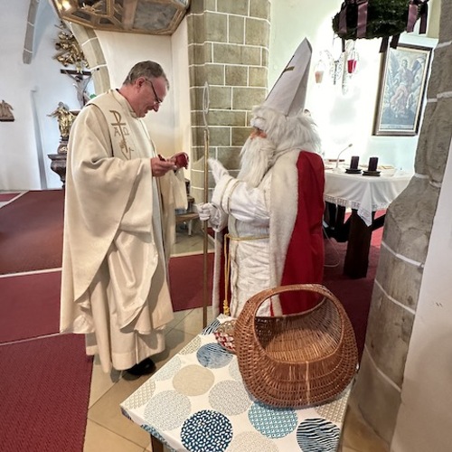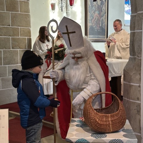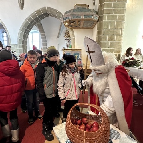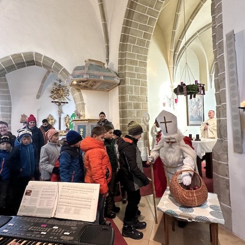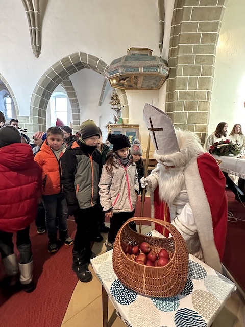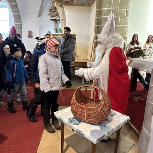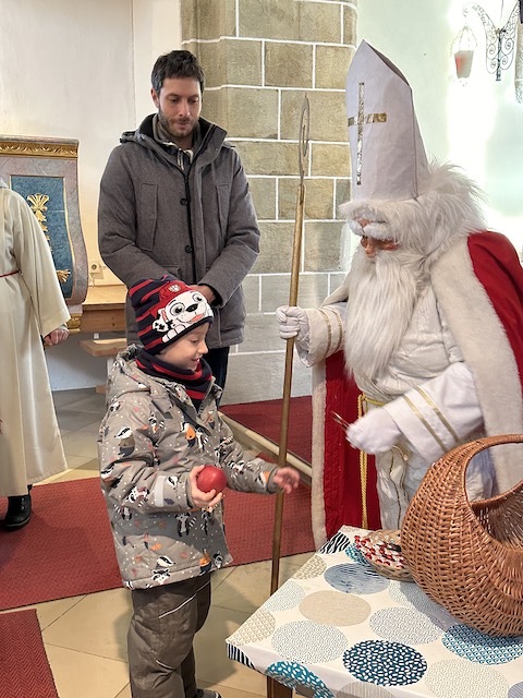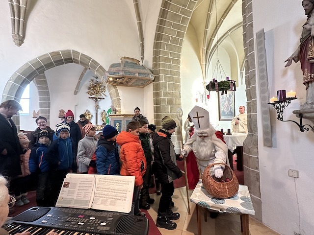 Florian begrüßte mit seinem auswendig aufgesagtem Gedicht den Hl. Nikolaus, dieser beschenkte auch heuer wie seit 62 Jahren mit großer Freude die Kinder und alle die zu dieser fröhlichen Nikolausmesse beigetragen haben.