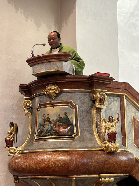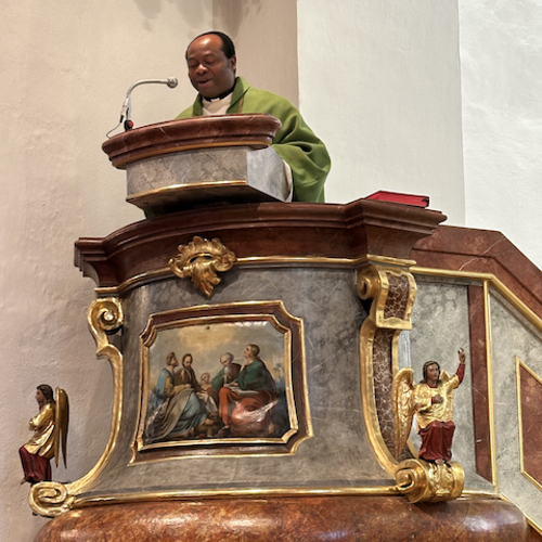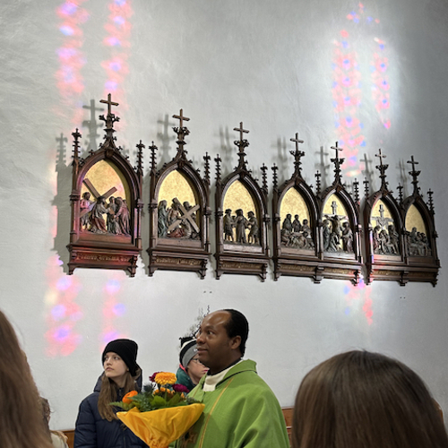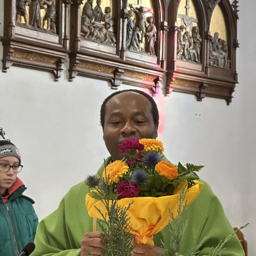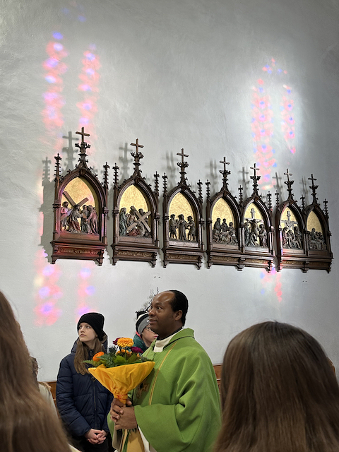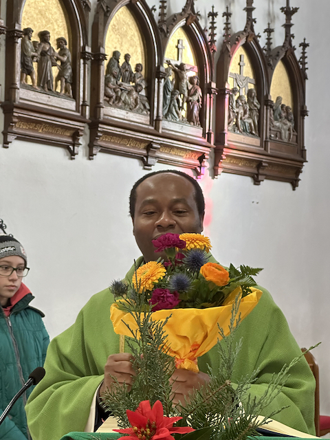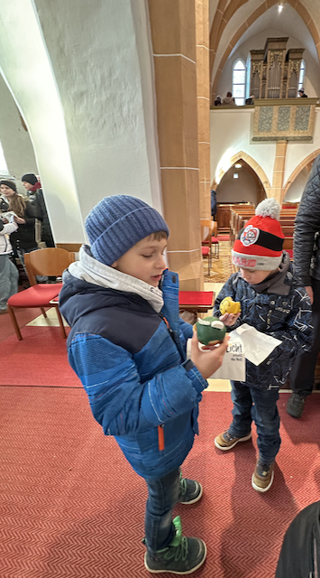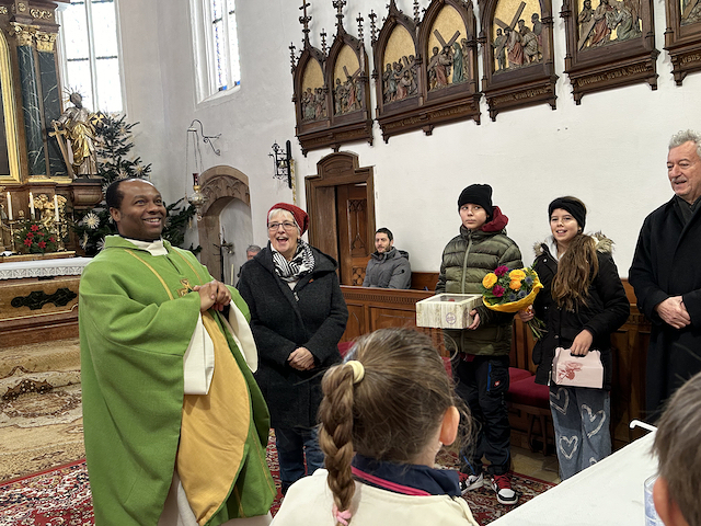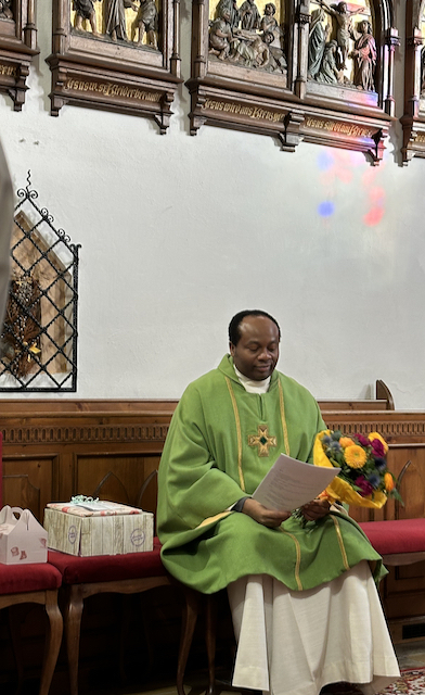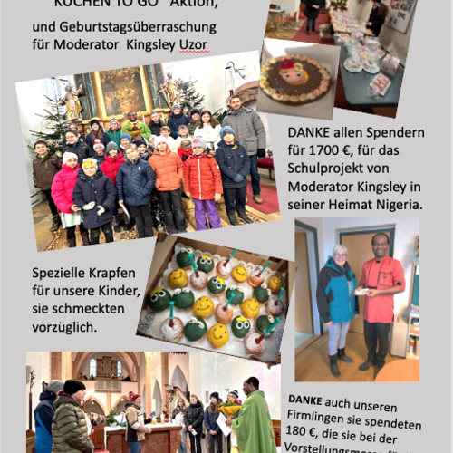 Familienmesse mit Geburtstagsfeier für unseren Moderator Uzor Kingsley, mit "Kuchen to go" Aktion von Grete mit ihren fleißigen Helferinnen, gab es